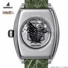 超硬質ブレードを再現した時分針を採用。調査兵団の「自由の翼」を象ったプレートが4時位置で1秒ごとに回転します。自由の翼の右上にはリヴァイの名前が刻まれています。