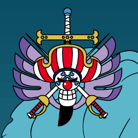 歩数変化によって、バギーのポーズが変化。クロスギルドのメンバーたちが集合します。