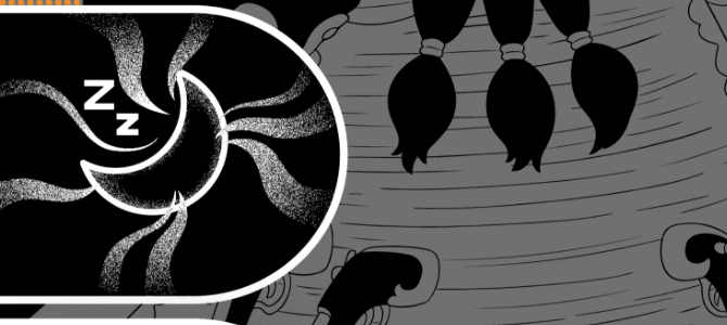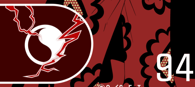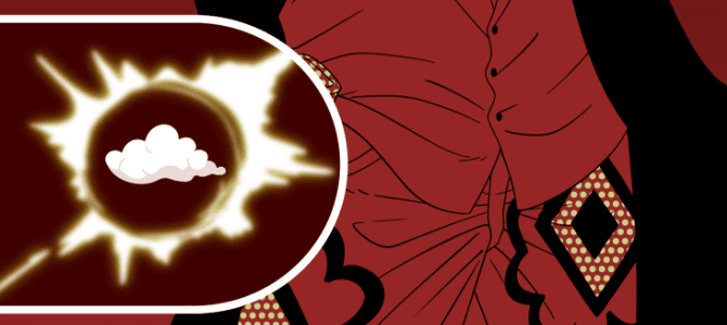 ティーチの異能である、2つの悪魔の実の能力「ヤミヤミの実」と「グラグラの実」の能力をイメージしたデザイン。