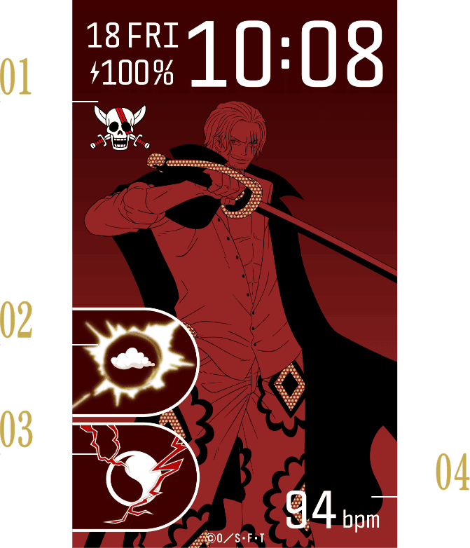 呼吸エクササイズ集中力を高めるために、呼吸エクササイズをワンタッチで起動できるショートカットキーを搭載。 シャンクスが放つ“覇王色の覇気”をイメージしたデザインを採用しています。
